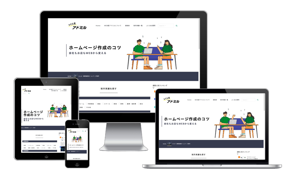 弱点はありますが、現在の主流と言っても過言ではないレスポンシブサイト。モバイルフレンドリー化されていなウェブサイトはSEO対策にも不利に働くため、アドミルでもレスポンシブサイトが基本設計となります。